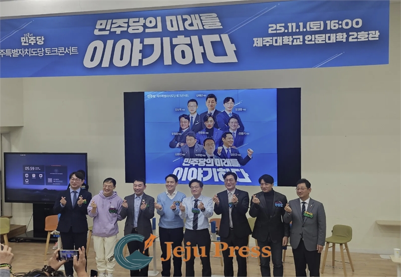 【제주=제주프레스 | 선보배 기자】 더불어민주당의 젊은 국회의원들이 제주를 찾아 당의 미래 전략과 실용주의 전환을 논의했다. 지난 1일 오후 제주대 인문2호관에서 열린 ‘민주당의 미래를 이야기하다’ 토크콘서트에는 김한규, 박주민, 김용민, 장철민, 한준호, 김상욱, 김태선, 모경종 의원 등 8명이 참석했으며, 약 300여
